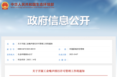 记者10日从生态环境部了解到,生态环境部日前明确工业噪声纳入排污许可管理,将指导地方依法有序开展排污许可证核发和开展排污登记管理工作,推动“十四五”期间工业噪声依法全部纳入排污许可证管理。近日,生态环境部网站印发了《关于...