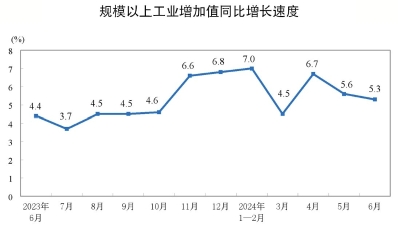 6月份,规模以上工业增加值同比实际增长5.3%(增加值增速均为扣除价格因素的实际增长率),环比增长0.42%,其中黑色金属冶炼和压延加工业增加值同比增长3.3%;钢产量为9161万吨,同比增长0.2%。分三大门类看,6月...