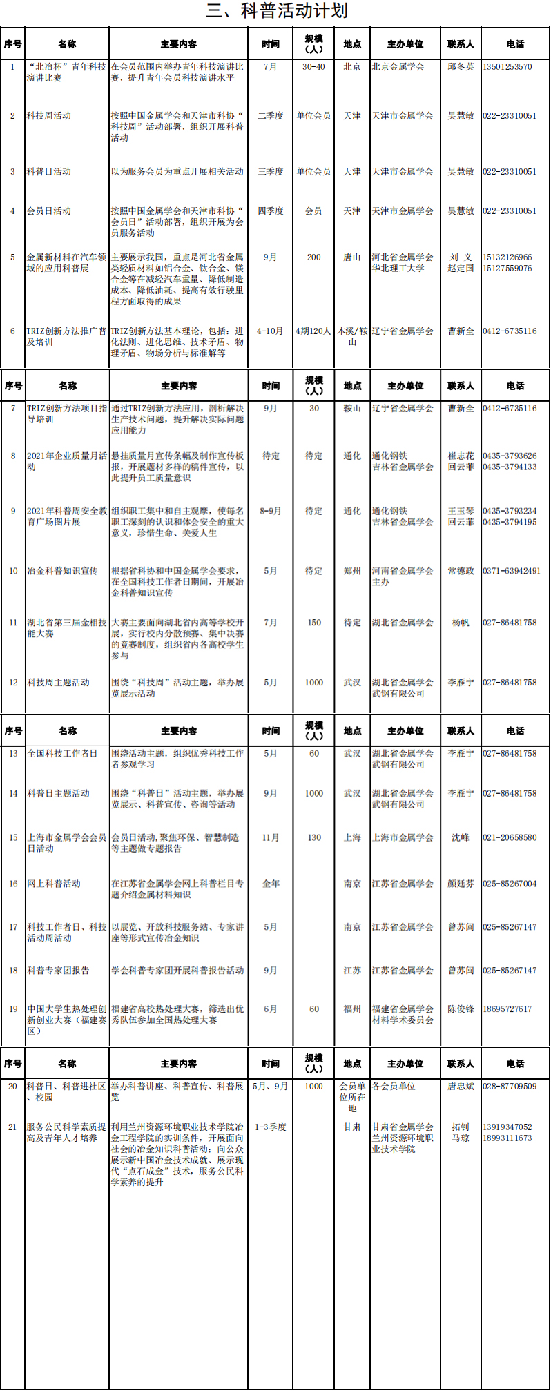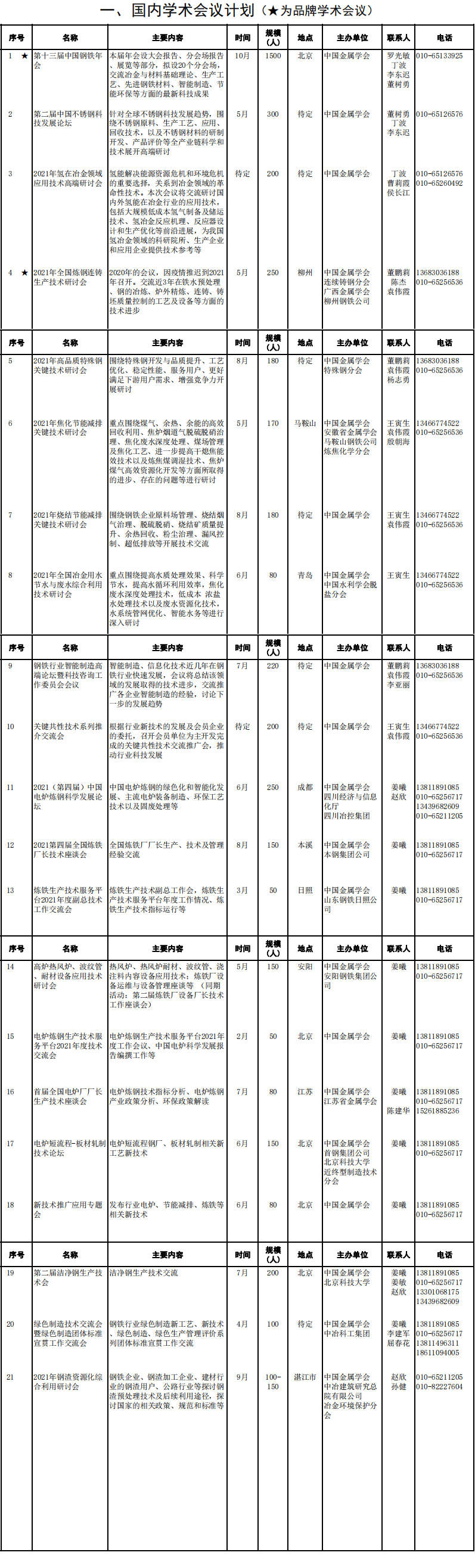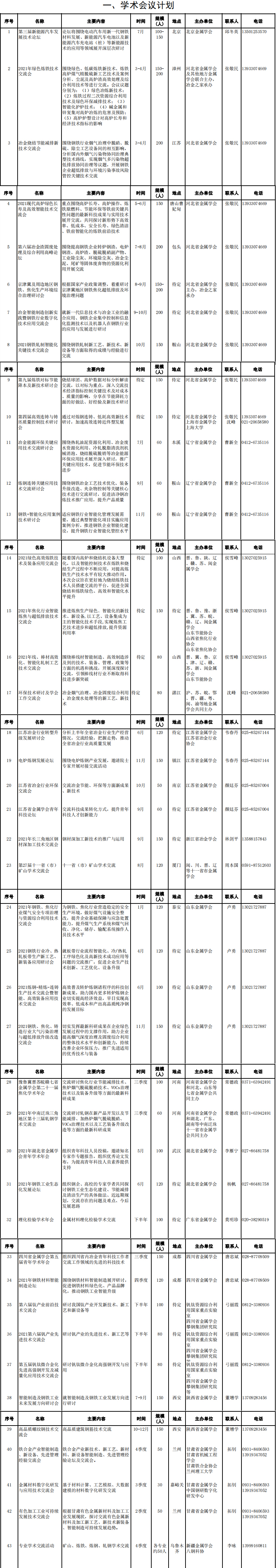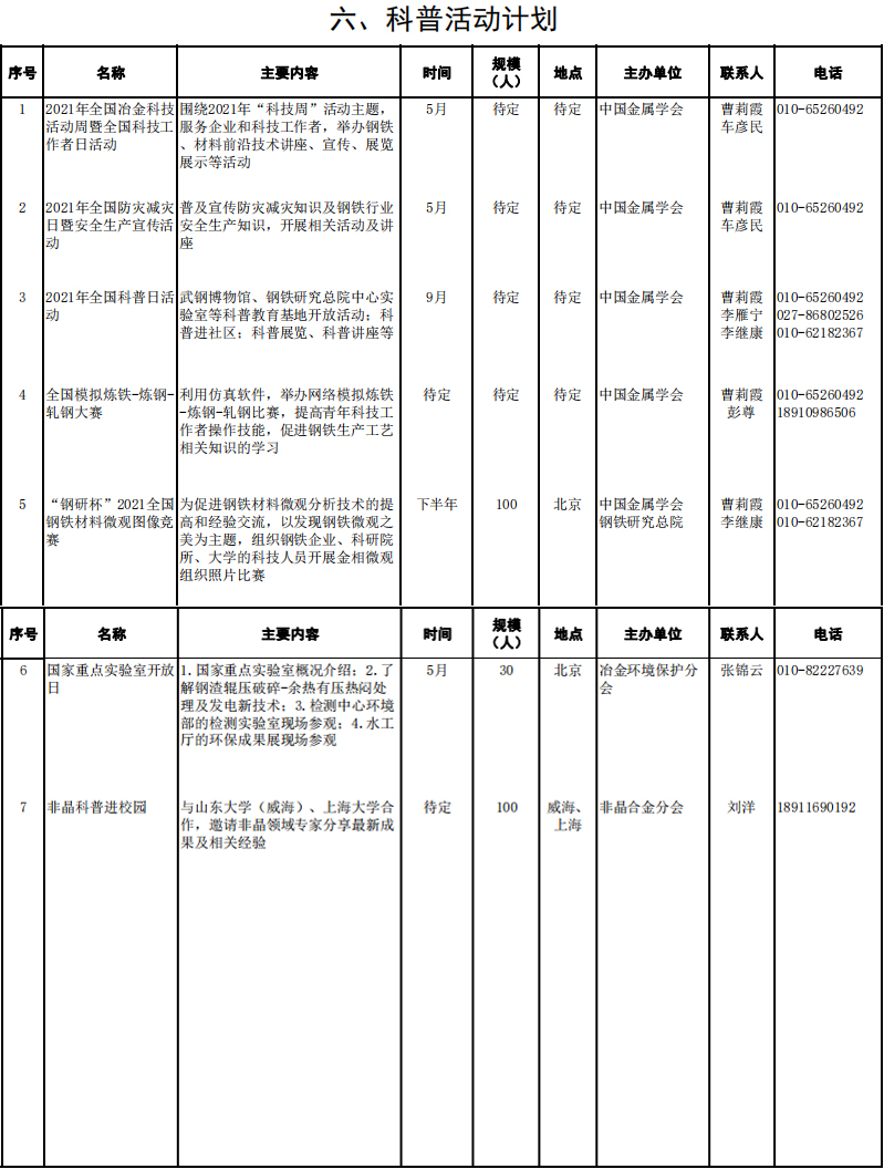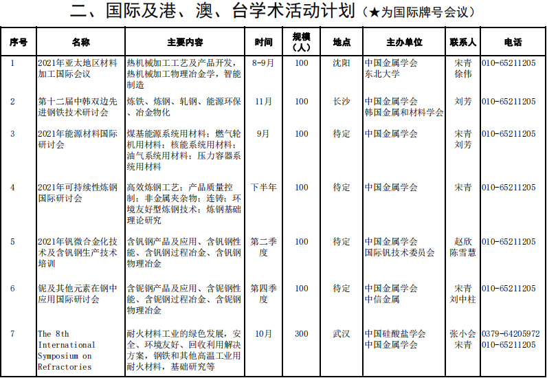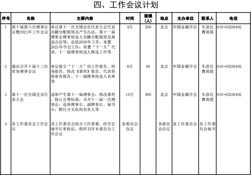 中国金属学会2021年度工作计划